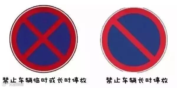 圆圈里是个叉是禁止车辆停放的标志,看到这个标志哪怕一秒也不能停;圆圈里是道斜杠是禁止车辆长时间停放,如果想要上下乘客或装卸东西,打开双闪将车停靠在路边,可以短暂的停留片刻。