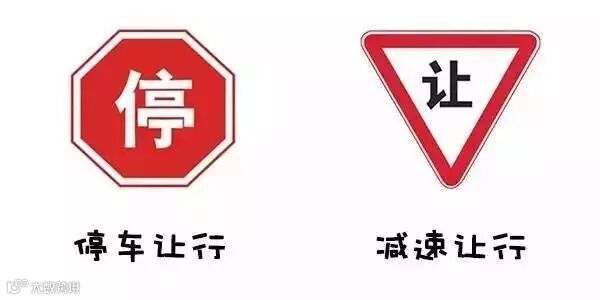 停车让行多出现交叉路口,车辆必须在停车线后观望,确认安全后才能通行;减速慢行告示车辆驾驶人须慢行或停车,在确保干道有限的提醒下,认为安全时方可前行。