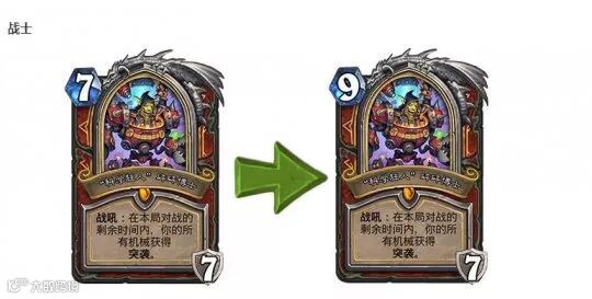 在如今的天梯当中,防战和炸弹战已经并不是最为热门的卡组,他们的生存面临着极大的压力。加两费的削弱,很有可能让战士们活不到掏出英雄卡的那一刻,就已经缴械投降了。