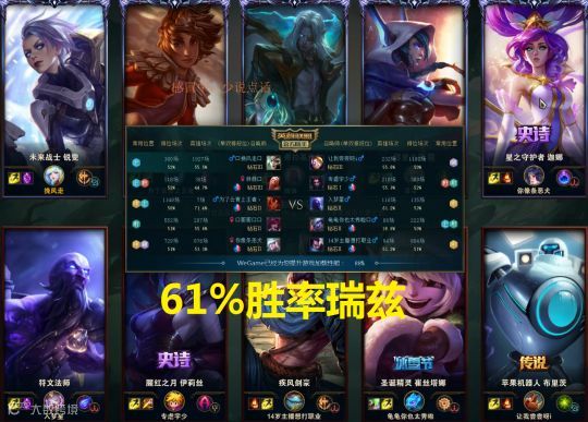 游戏中君克玩的自然是本命英雄锐雯,与君克对线的则是一位拥有61%胜率的瑞兹,在游戏载入界面君克看到对方段位后,就用很震惊的语气给观众们说:“钻一了,兄弟们,分段有点高啊!为什么段位这么高?71%的岩雀,61%胜率的瑞兹上路 ”。