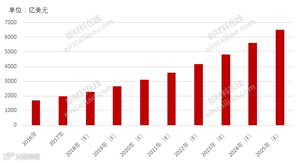 全球生物医用材料产业迅速发展,产业规模不断提高。2016年,全球生物医用材料市场规模为1709亿美元,预计2020年将突破3000亿美元,2016-2020年复合年增长率约16%。据此保守估计,至2025年全球生物医用材料产业规模将突破6000亿美元。