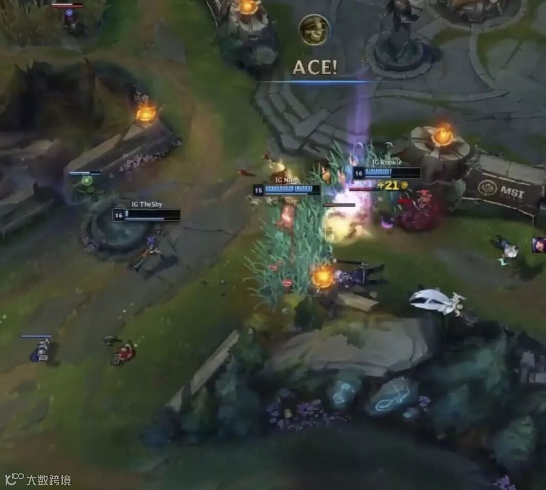 前期IG似乎炸裂的下路,使得闪电狼可能有些掉以轻心了,虽然线上拿到了优势,但是并没有人可以威胁到Ning王的发育,艾翁作为一种功能型的打野,本身具有其特色,他的gank就是打那些过于自信的人,下路一波支援打出了一换二的团战,总算是缓和了前期紧张的气氛。