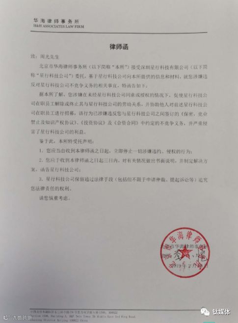 此外,Roadstar在“罢免联合创始人”事件后,突然开始裁撤员工,而被辞退员工也让Roadstar背负了不少n+1的赔偿债务。钛媒体从Roadstar内部获得的一份律师函显示,辞退员工的举措被指来自周光。