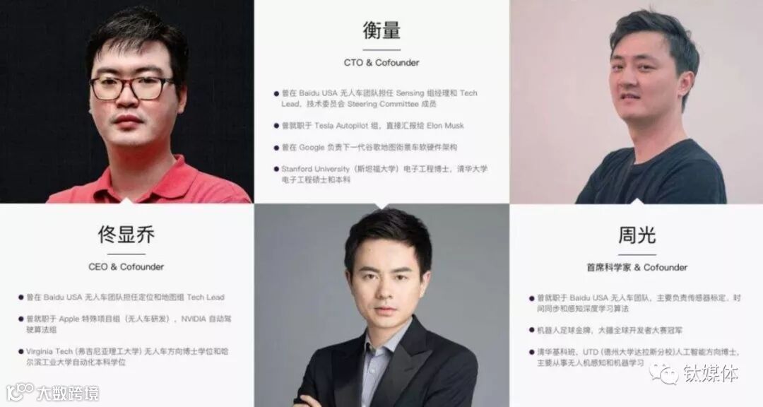 资本迅速涌入让同在百度北美研发中心工作的佟显乔、衡量和周光看到机会。衡量在接受钛媒体采访时坦言,“我们也是看到Pony(小马智行)创业之后,觉得这是个很大的机会,因此决定联合创业。”