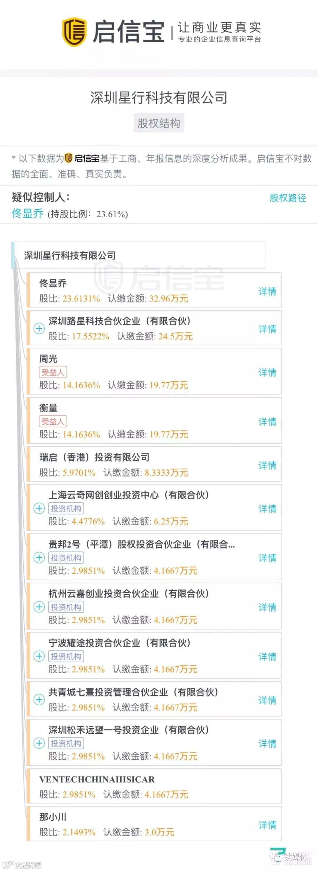 Roadstar.ai 即“深圳星行科技”股东持股图(来源:启信宝)