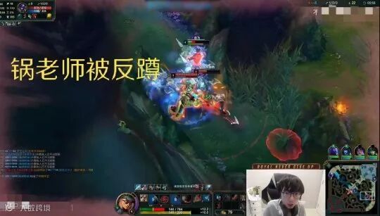 锅老师刷到四级后发现中路有机会,直接去中路GANK一波,配合冰女收掉对面刀妹人头。人马也没闲着,去了下路GANK,拿到双杀,对面人马五分多钟就已经到六了!而盲僧只有四级,香锅去下路守一波塔,但是看见人马溜进自己的野区,这绝对不能忍,直接就Q中残血人马,一脚就踢了上去。两人打到爆炸果实那里,但都已经起了杀心,人马眼看就要被击杀,对面辅助牛头突然从墙下面EQ二连,锅老师被反杀。