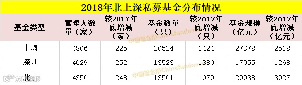 深圳有私募管理人4629家,较2017年增加252家;基金数量为13523只,增加1380只;私募基金规模为17955亿元,增长1268亿元。