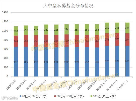 管理基金规模在50亿—100亿元的274家,较2017年末增长了36家;管理基金规模在20亿—50亿元的671家,较2017年末增长了72家。