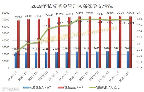 周四晚间,中国证券投资基金业协会公布了2018年私募备案登记总体情况,数据显示,截至2018年底,私募基金的总规模达到12.78万亿元,较2017年底猛增了1.68万亿;同时,目前有2.44万家私募管理人,管理着7.46万只私募基金。