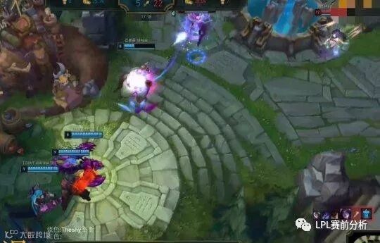 随后杰斯被换到中路打刀妹,但刀妹也及时换线换到上路,杰斯不得不再回到上路,并且还在草丛里蹲了一波刀妹,不过在互相打了一套之后还是赶紧溜了,打不过对面刀妹,不过TheShy还不死心,EQ二连加农炮打中后,直接上去干,但还是被丝血刀妹给秀了,并且对面还没有大招,直接被秀了一脸。