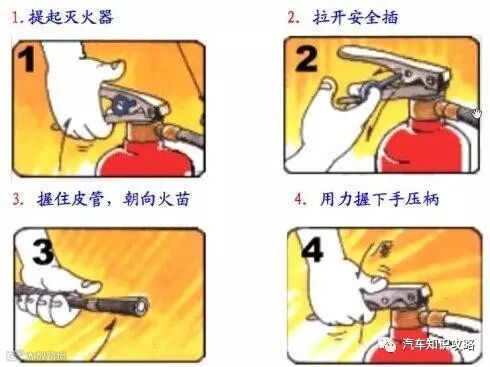 车辆自燃时,灭火器怎么使用?