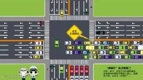 “闯绿灯”指的是前方交叉路口路拥堵,而这时信号灯变绿灯,驾驶员还是往拥堵的地方行驶过去,造成更大的交通堵塞。下面举些例子。