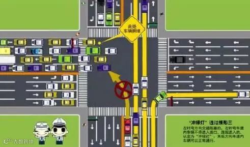 以上三种情形我们可以看出,如你所在车道想行驶的方向路口拥堵的话,都不能进入路口,违反的就是按“闯绿灯”进行处罚。