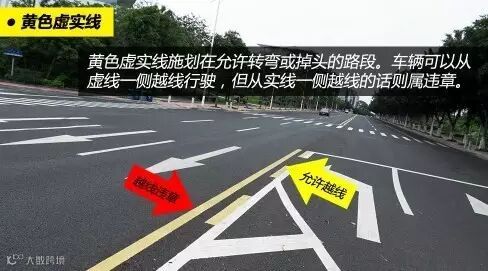 黄色虚实线通常施划在桥梁前后及允许掉头的路段,也能起到分隔双方向车道的作用。黄色实线一侧禁止车辆越线或压线行驶,虚线一侧准许车辆暂时越线或转弯。