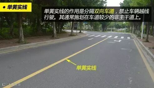 单黄实线的作用是禁止双方向车辆越线或压线行驶。单黄实线一般施划于单方向只有一条车道或一条机动车道和一条非机动车道道路、有其他危险需要禁止超车的路段。