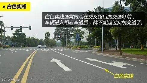 白色实线的作用是分隔同向车道,通常施划在交叉路口的交通灯前。不少人开车压线违章被拍,压的基本上就是这种标线。