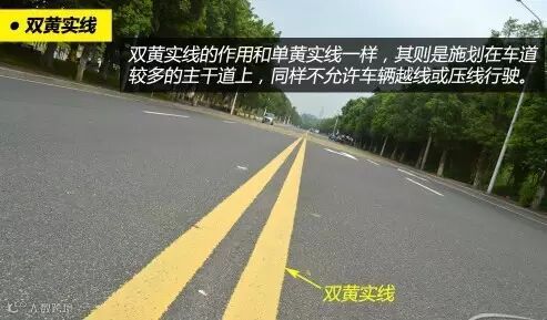 双黄实线的作用和单黄实线一样,也是禁止双方向车辆越线或压线行驶。双黄实线一般施划于单方向有两条或两条以上机动车道,而且没有设置实体中央分隔带的道路上。
