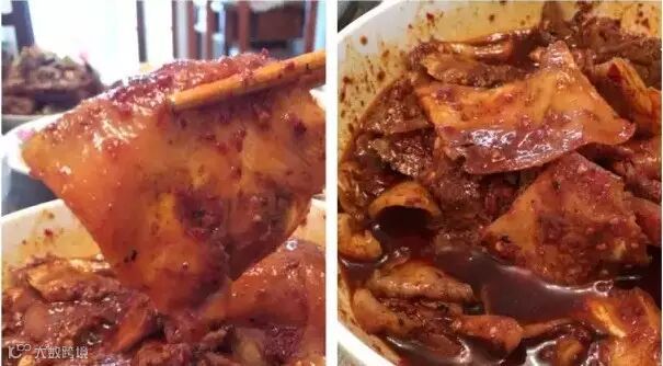 由猪头肉片成,肉片又薄又大,用秘制辣椒面等调料凉拌而成,爽脆入味,深得食客欢迎。往往每天上午11点后就休想吃到了。