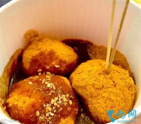 其实就是类似于麻薯,外面裹着类似红糖水的汁,在制作的过程中要敲三下鼓,所以叫做三大炮。远远地就能听见声音,制作方法真的很特别。三大炮和菠萝饭都很好吃,三大炮虽然裹了很多粉还有浆汁,但不是很甜的那种,菠萝饭个人觉得配上凉粉很解辣,不会觉得很酸。
