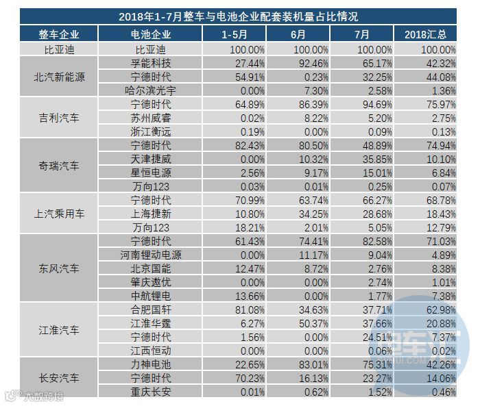 根据推算结果,2018年1-7月整车与电池企业配套情况及装电量占比情况印证了《公告》数据中部分对应关系。整车企业的市场表现也直接决定了电池产业链的经营业绩。
