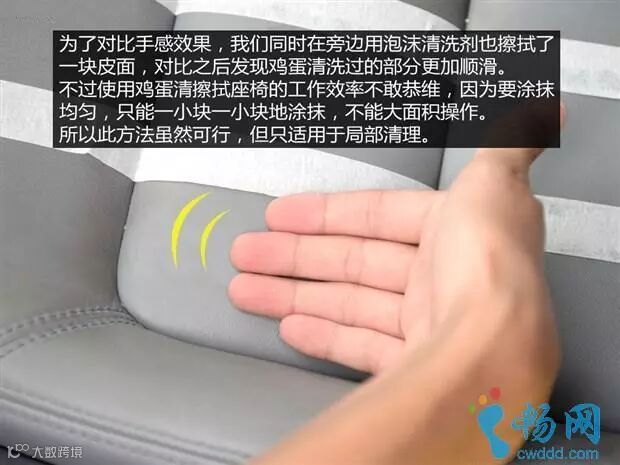 从施工效率方面来看,香蕉皮和鸡蛋清的操作都不会很快,都是一小块一小块的清洁,如果过于着急的话,就会因为涂抹不均匀而事倍功半了,所以如果想进行全车真皮座椅清洁,或者是大面积清洁,这两种方法都不推荐。最终工作效率方面还是传统的泡沫清洗剂完胜。另外,泡沫清洗剂除了可以清洗真皮,还可以清洁车内面板和塑料零件,功能范围也要更多一些。
