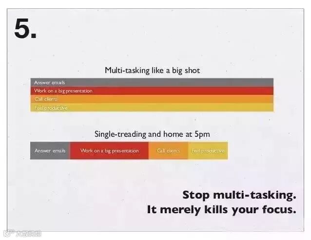 5、不要多任务,这只会消耗注意力;保持专注,一心一用。