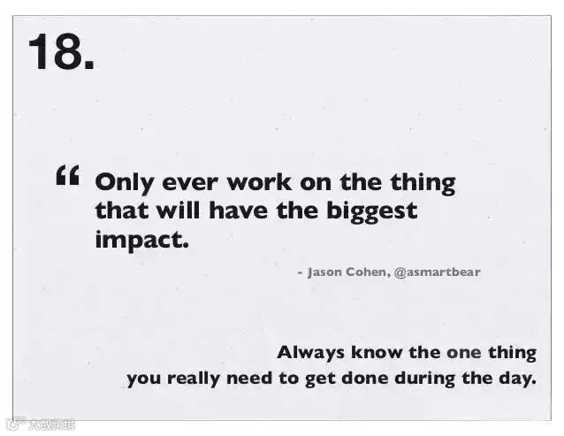 “Only ever work on the thing that will have the biggest impact” 只去做那件有着最大影响的事情。—— Jason Cohen
