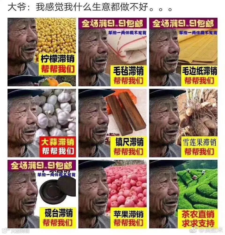 去年有一大批农副产品的店家用了下图的老大爷做宣传图,一开始效果相当好。直到成为一个笑话。但因为中国市场巨大,所以依然有很多人上当。