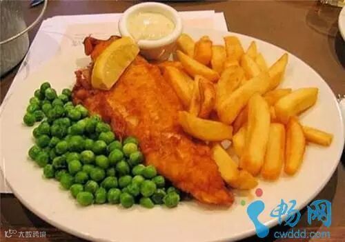 长期以来,炸鱼薯条一直是英国最流行的外卖食品。全境有1.1万多家炸鱼薯条店,这道快餐每年大约能卖出2.55亿份。这一传统美食是将鱼(一般是鳕鱼和 黑线鳕)两面裹粉后煎炸,再配上比美式薯条更加粗厚的英式薯条。进餐时的传统配料包括盐、醋、番茄酱或蛋黄酱沙司以及豌豆糊。如果沿着英国海岸旅行,炸鱼 薯条堪称经典的海滨晚餐。