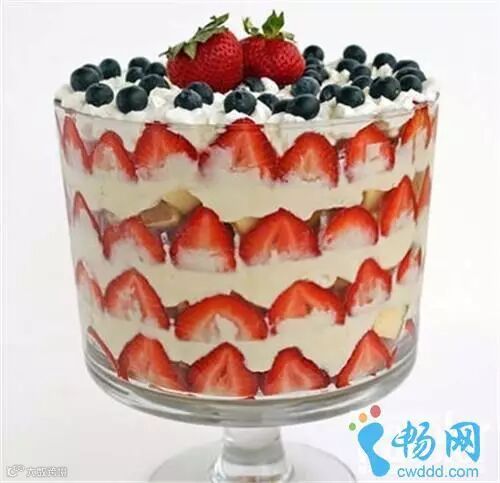 英式查佛(trifle),象布丁一样,是英国的传统甜品,通常由水果,蛋糕或是饼干,custard,奶油一层一层做成,层层叠叠就是trifle的最大特点,此外,用甜酒比如雪利酒淋泡过的蛋糕或是手指饼,也是trifle的独特之处。水果的清甜加上美酒的香醇,算是非常独特的甜品。除了那些英国人离不开的烤豆、鱼和炸薯条外,英式香肠外,这个很英式的trifle算是英国人最离不开的甜点了。