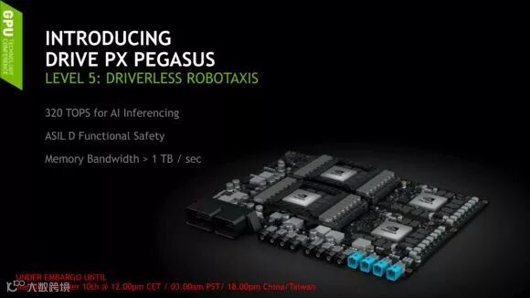 而软银在2016年以234亿英镑收购的芯片巨头ARM,则在今年9月底宣布推出旗下首款为自动驾驶汽车设计的芯片Cortex-A76AE。此外,软银愿景基金还投资了超过40亿美元购买英伟达的股票,英伟达在今年5月份,推出了可用于Level 5的AI自动驾驶平台——Drive PX Pegasus。