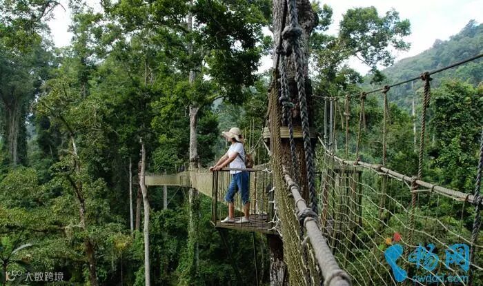 这里层叠茂密的原始热带雨林中,密集生存着代表东南亚热带雨林的标志性树种——望天树,在它们达七十至百米的参天巨干上,一条36米高的树冠走廊凌空蜿蜒数百米,走过全球无数科学家和敢于挑战它的各界人士。