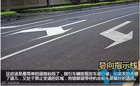 指示标线是指示车行道、行驶方向、路面边缘、人行横道等设施的标线。虽说这些标线只是起到指示作用,但违反指示标线通行也可能被处罚,例如路口不按导向车道通行。
