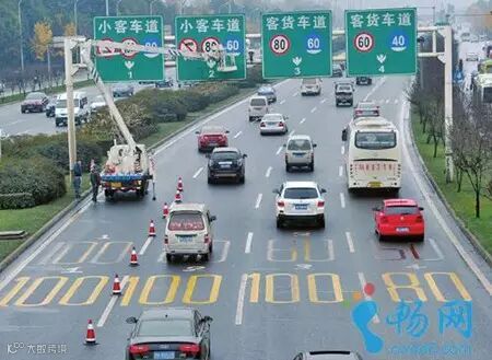 施画在地面上表示限速的数字也算是指示标线的一种,限速路段除了会用指示牌进行提示外,也会在路面上每隔一段距离就施画上相应的车速限值。如果地面施画的数字为黄色,则表示该路段最高限速为这一速度,如果数字为白色,则表示该路段最低限速为这一速度,即车辆行驶速度不得低于这一速度。