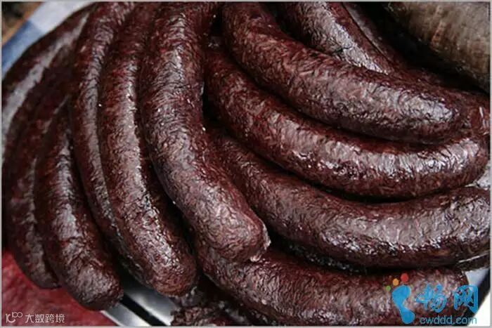 猪血肠摩梭语哈布,制作方法是在半熟的米饭中,配之猪血、韭菜根、葱、姜、蒜、盐、黄果皮粉、香料、陈板油后,填入猪大肠内,卷成圈,然后放入蒸笼蒸熟。