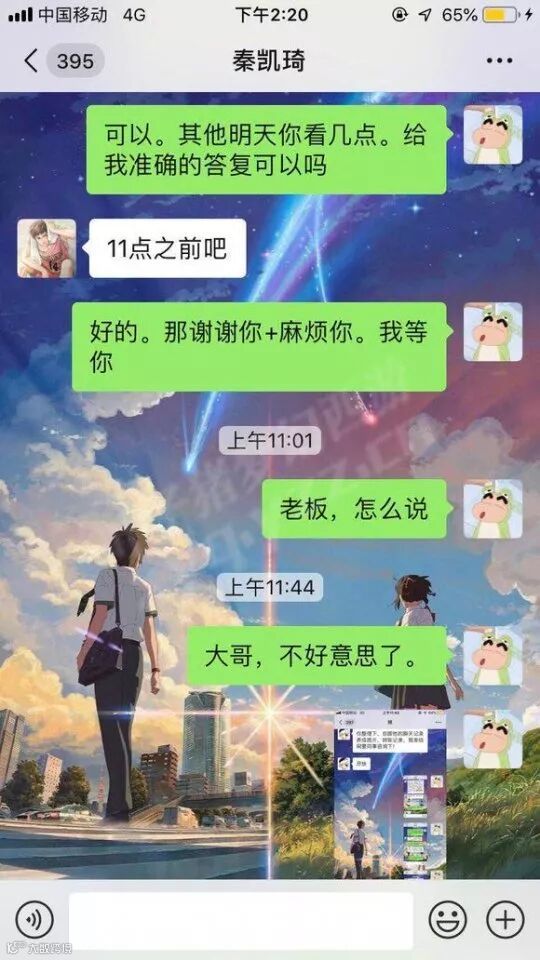 老板表示“11点多的时候给你答复,我一会要登机了。”