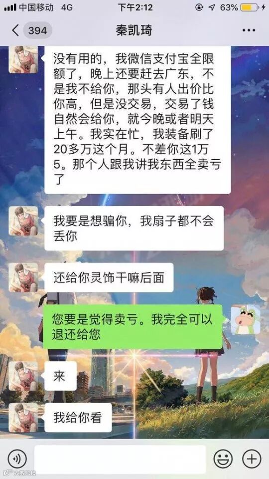 在丢完垃圾灵饰之后,老板却称自己的微信和支付宝全部限额了,自己这个月刷军火就刷了20多W了,不差你这1.5W。玩家当时也觉得老版不至于来骗他的1.5W,但是这笔钱对于自己而言不算小数目,还是有些忐忑。