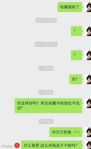 遇到一个买收藏不给钱的人...这点钱你说你至于吗?