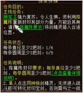 一共五排,每一排放三把剑轻松过关。和剑同族的可以直接拿剑,不同族的需要杀,位置没插对的可以拔出来再插。插好剑阵后系统就提示可以杀狮驼王了。