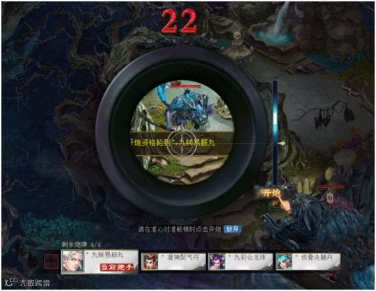 跟随系统的准心移动然后点击开炮即可,很简单。如果没打到怪,怪就会前进,一共4发炮弹,如果没打死怪,还是和普通覆海一样,需要队员一起ALT+A攻击怪。