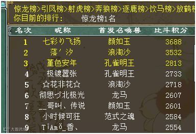 在这里得感谢龙堂的帮主残剑、长空、飞雪的赏识带我踏入PK的殿堂。