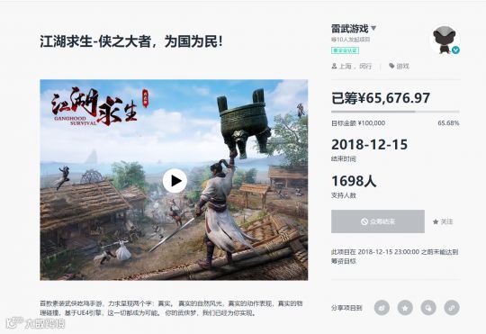 *《江湖求生》曾上某众筹平台,未能成功
