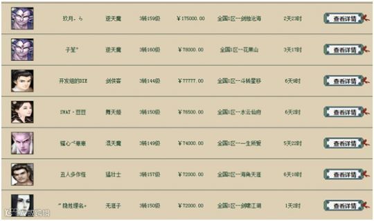 全服出售的装备、召唤兽、角色都可以在这里找到,以百元起步,到数十万天价不等,我们偶尔会看到某条游戏新闻“某某装备卖出了2万元的天价”等等,与藏宝阁中相比简直就是无知小巫。