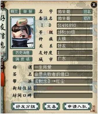 此人一身平民装备宝宝,却在整个区组玩单挑玩得风生水起,我也曾追随他的脚步,玩过一段时间的单挑男人,但不知是天赋还是运气,拼了老命也只处在服务器的中端水平,在相继被男鬼、女魔、男魔、甚至是仙族虐过之后,终于在一个秋高气爽的午后放弃了自己的单挑梦,成为了单纯的围观爱好者。
