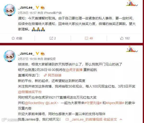 然而令人吃惊的是,在虎牙首播当日老李在微博上发布了一条消息:首播暂时取消,自己需要处理一些紧急的私人事务。看到这里,小编真的是一头雾水。说好的首秀呢?板凳都搬好了就这么鸽了?