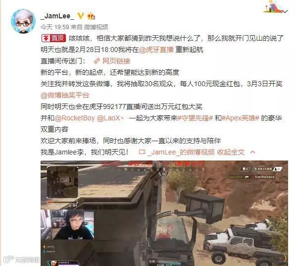 近日,熊猫的FPS台柱子老李也是在微博上宣布了不续约的消息,而他的下一站将会是虎牙直播。