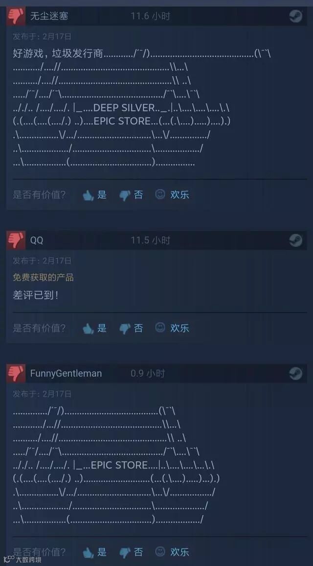 玩家本来就被这一连串的制杖操作搞的心态爆炸。作为玩家,应该如何用正当而不失礼貌地表达自己对游戏的态度?当然是在steam商店刷差评。短短几天,差评拉满,地铁系列几部前作的steam评论区一眼望去全是各式中指,玩家们试图用国际通用的问候手势表达他们的想法。