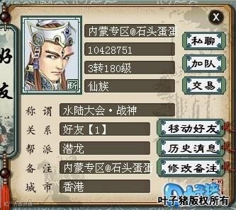“入驻的第一个区是神龙潭.理由很简单,有个QQ好友在这个区玩,是个仙,有个仙带练级真是快,不知不觉60级了.我不由佩服起自己来,这游戏果然幼稚~~ 但接下来的跑环赚钱买铁装让我痛苦不已! 三天三夜才换来一身装备,也是导致我以后再也没跑过钱的原因.