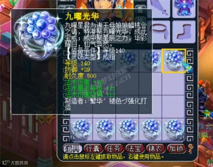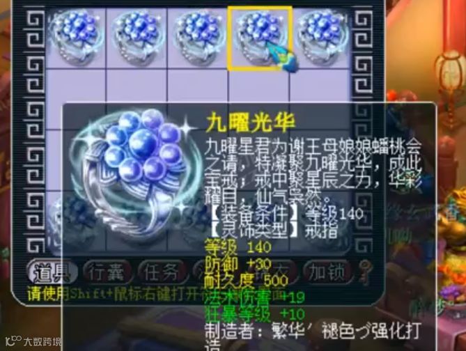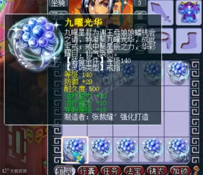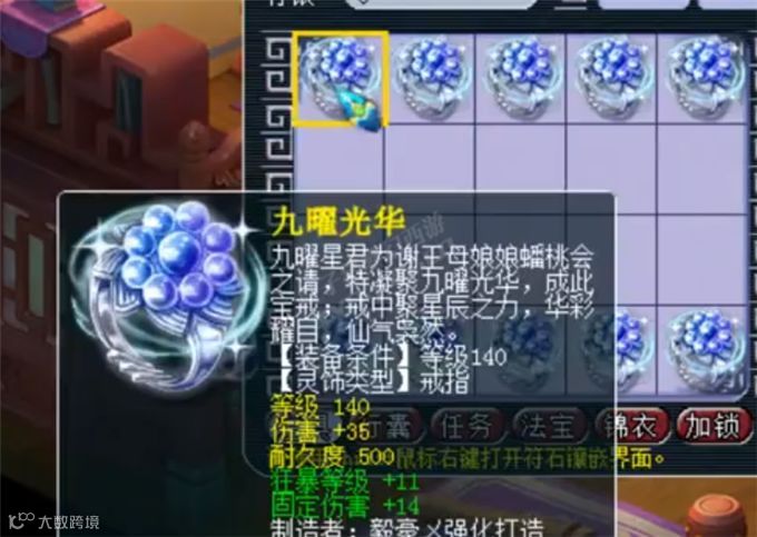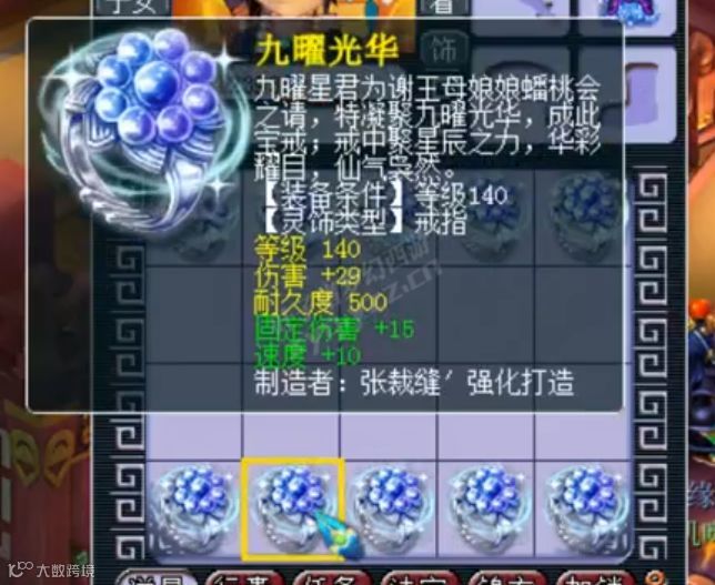 第七个戒指,固伤+速度,主属性还是伤害,任务普陀、无底洞应该还是勉强能用的。