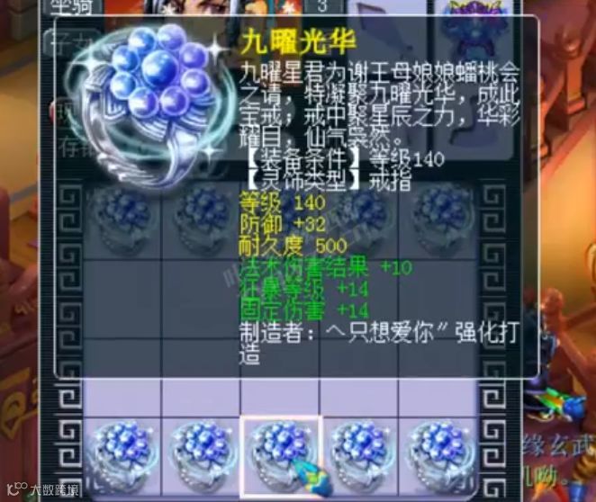 第五个戒指,法伤+法伤结果+法术暴击,主属性防御,可惜多了两个字,如果法伤结果是法术暴击或者法伤,那么这个戒指就相当值钱了。